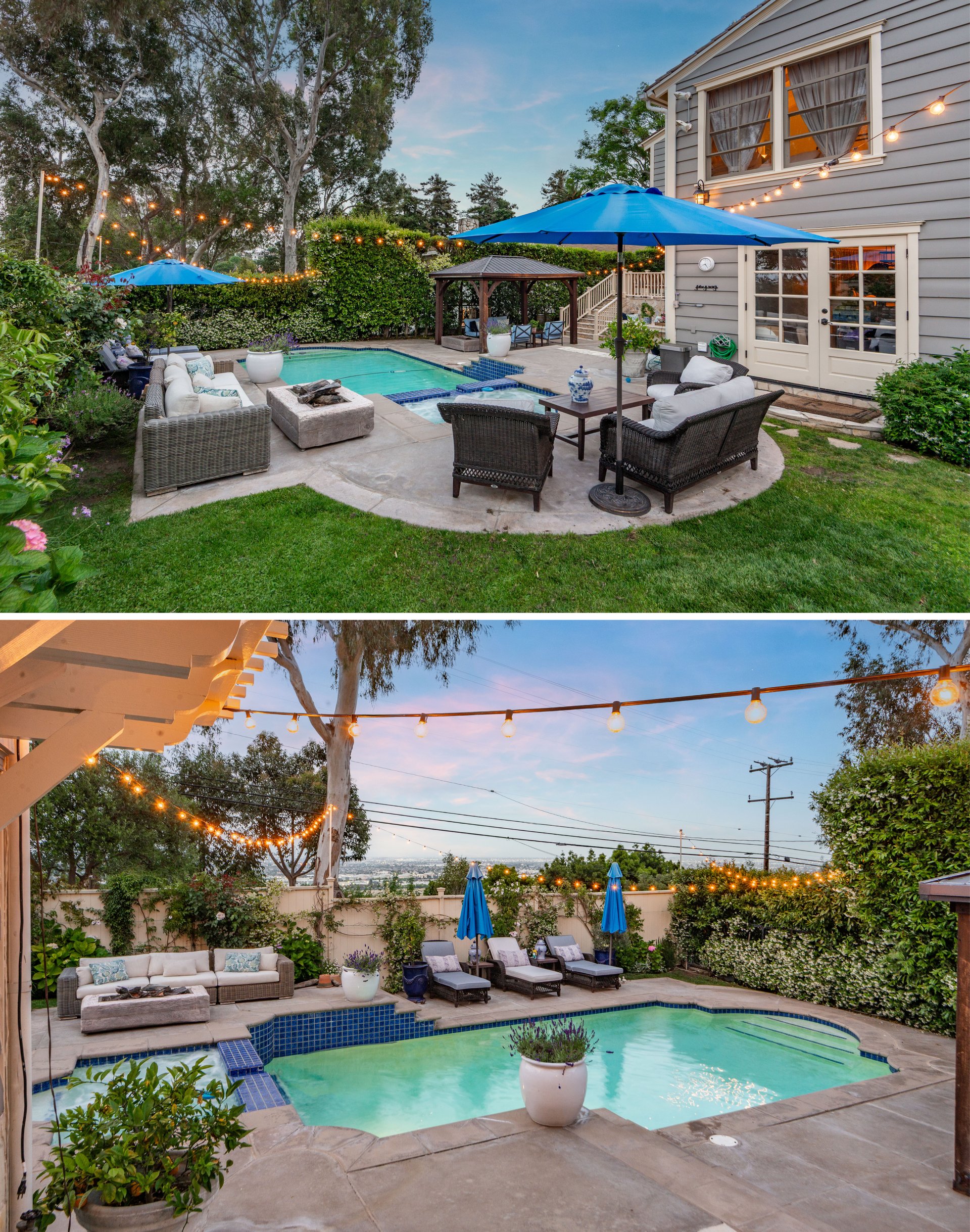 The backyard feels like a private retreat, complete with a sparkling pool and spa, built-in grill, fire pit, and beautifully landscaped lawn. Whether it’s a quiet morning by the water or a lively summer evening with friends, this home is designed to make every day feel like a vacation.
