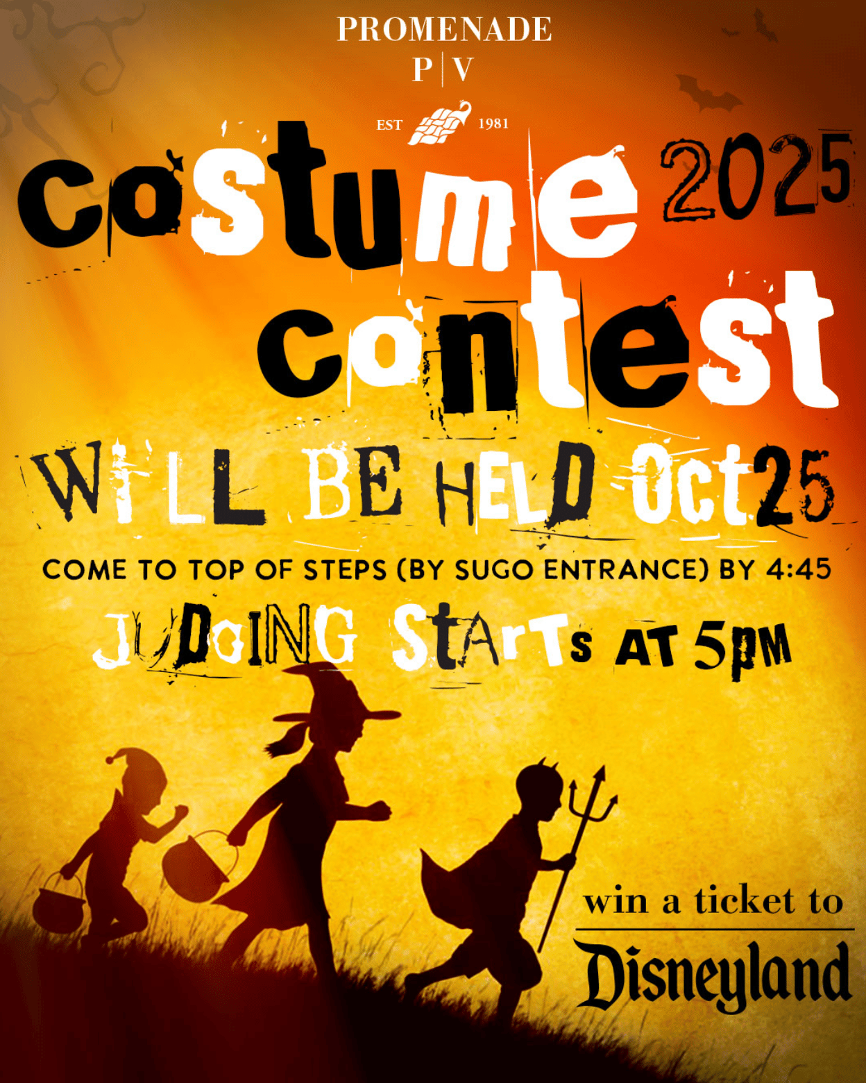 The magic is back at Promenade PV! Celebrate Halloween weekend with an evening of family fun, nostalgic charm, and plenty of treats. From thrilling carnival rides and face painting to photo scavenger hunts and festive eats, there’s something for everyone to enjoy. Enjoy candy, cotton candy, and fall-inspired treats as you stroll the open-air plaza decked out for the season. It’s a night of wonder, excitement, and Halloween fun right in the heart of Rolling Hills Estates.