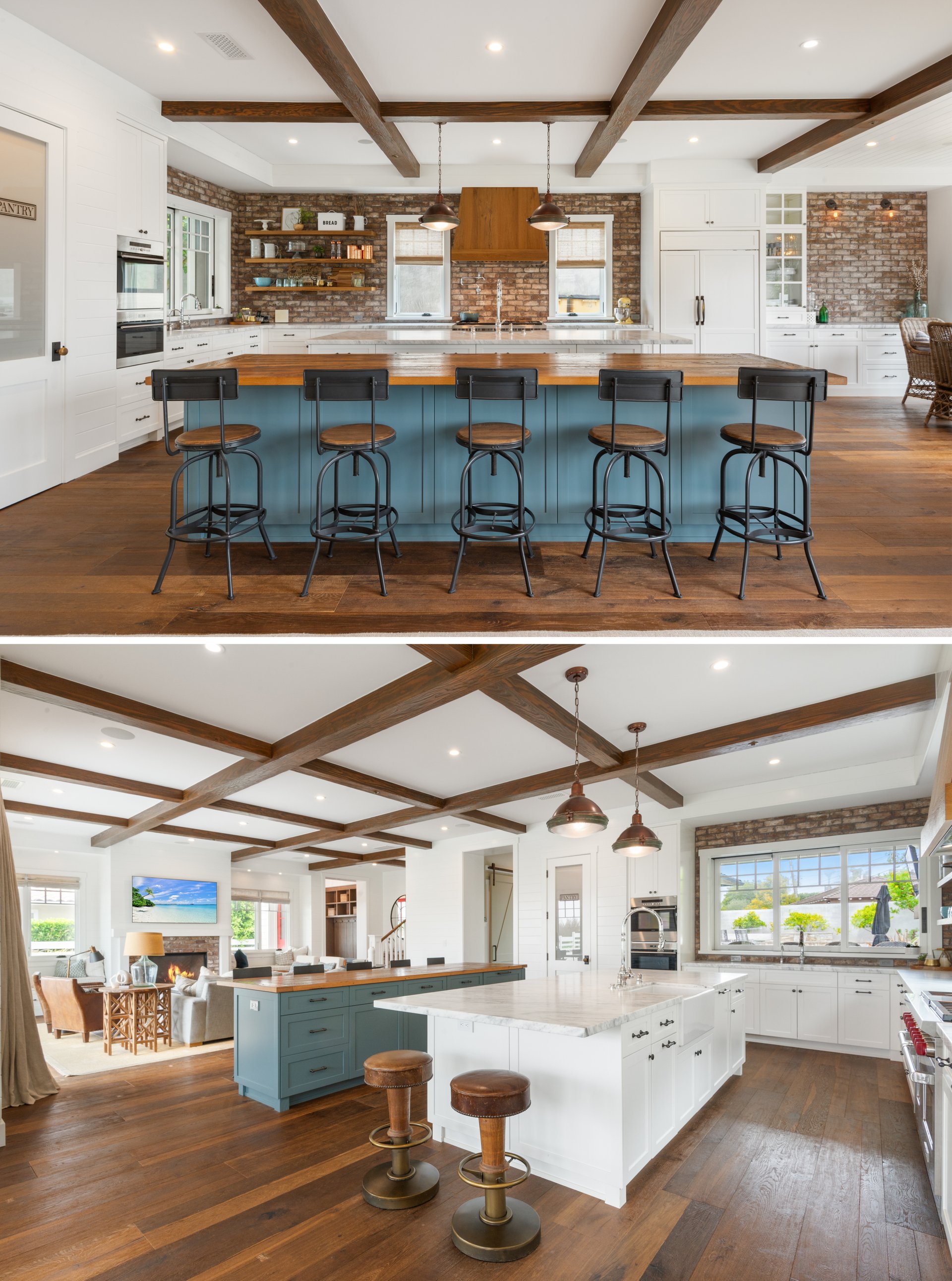 Built in 2017, this custom Coastal Farmhouse is a showcase of craftsmanship where luxury is found in every detail. Wide-plank wood floors, reclaimed barn wood, shiplap accents, exposed beams, and sleek Lowen black-metal windows create a timeless yet contemporary aesthetic that balances warmth and sophistication.