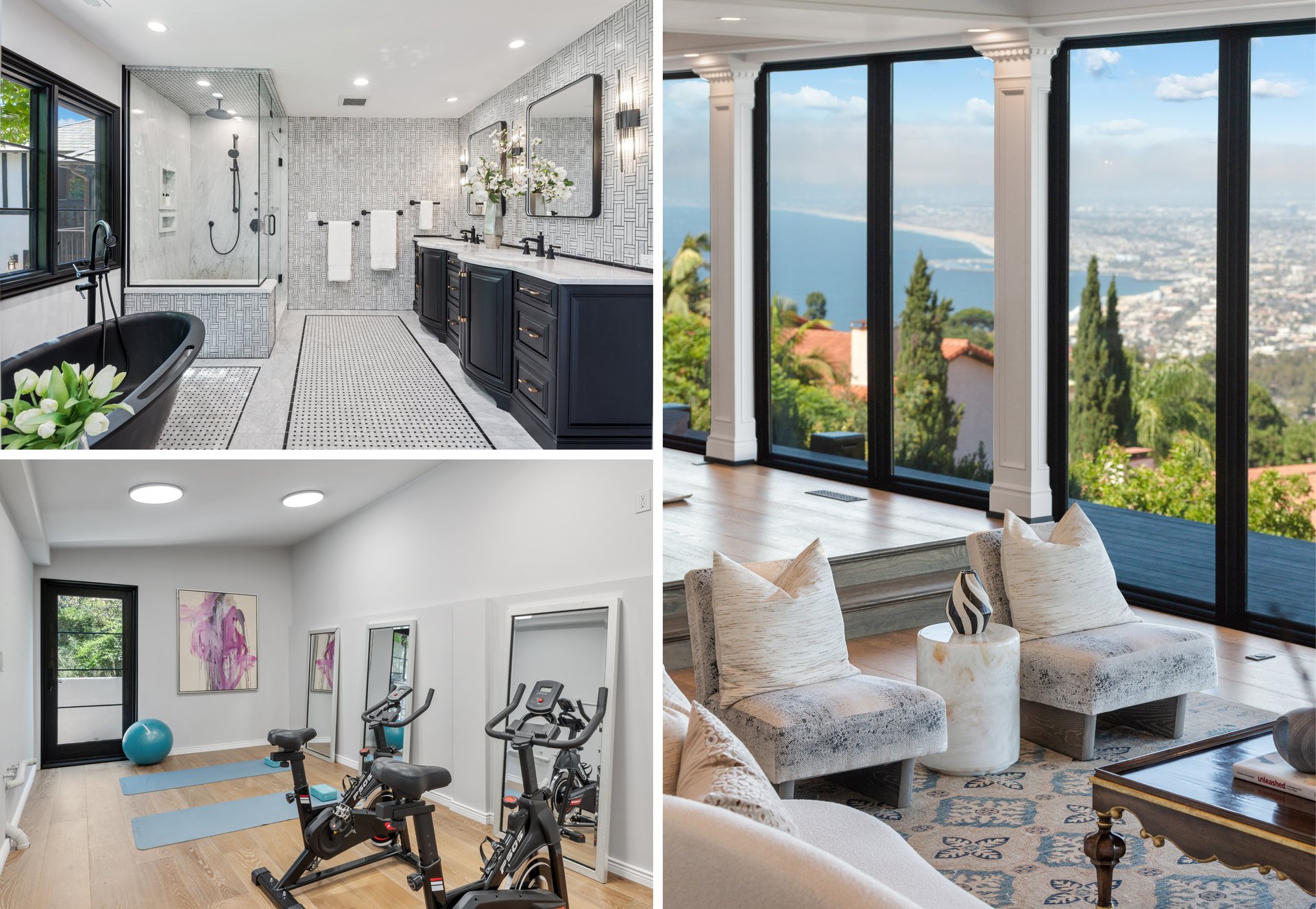 This remarkable home includes a spacious gym, an expansive primary suite with a luxurious spa-like bathroom, and multiple gathering areas that highlight the unparalleled views. From sunrise hues glistening across the Pacific to the twinkling city lights at night, every moment is framed by an ever-changing, cinematic backdrop.