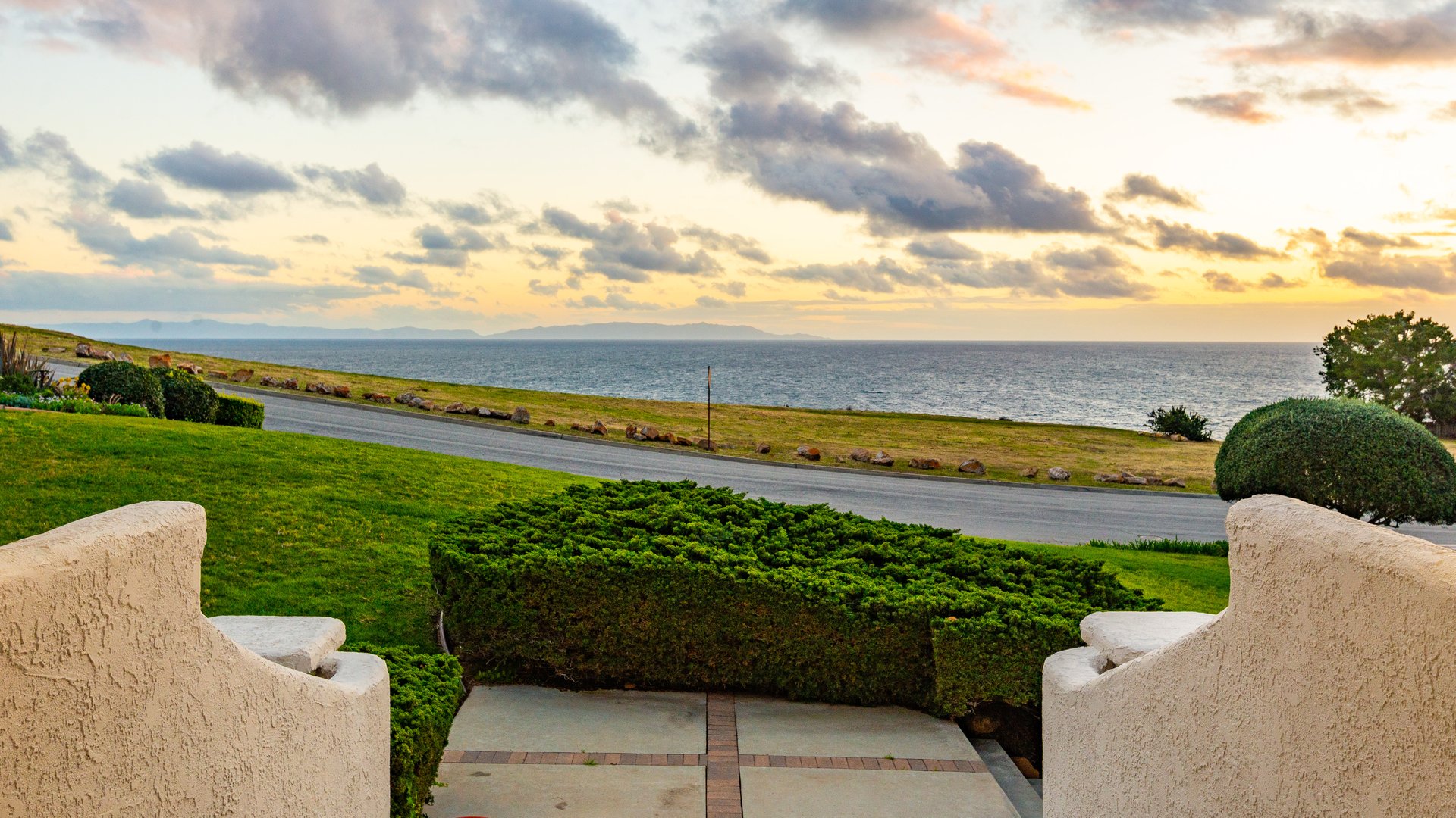 Situated in an A++ Palos Verdes Estates location, directly across from the bluffs, this exceptional property offers over 100 feet of frontage and sweeping ocean views. Gracious front steps welcome you inside, where a light-filled living room is framed by dramatic floor-to-ceiling windows creating a stunning backdrop. A cozy den connects to the private primary suite with ensuite bath and walk-in closet. On the opposite side of the main level, the family room, dining room, remodeled kitchen, and guest bedroom create the perfect environment for everything from casual mornings to elegant evenings. Downstairs, four spacious bedrooms provide flexibility for family, guests, or home office use. Set on an expansive 19,766-square-foot corner lot, the grounds offer abundant space for outdoor enjoyment, entertaining, or future possibilities. A generous three-car garage and large driveway provide ample parking and storage. Just a short distance from all three level schools, it's an ideal location. Ocean views, a thoughtful floor plan, and an oversized lot in one of Lunada Bay's most desirable neighborhoods... this is Palos Verdes living at its finest.