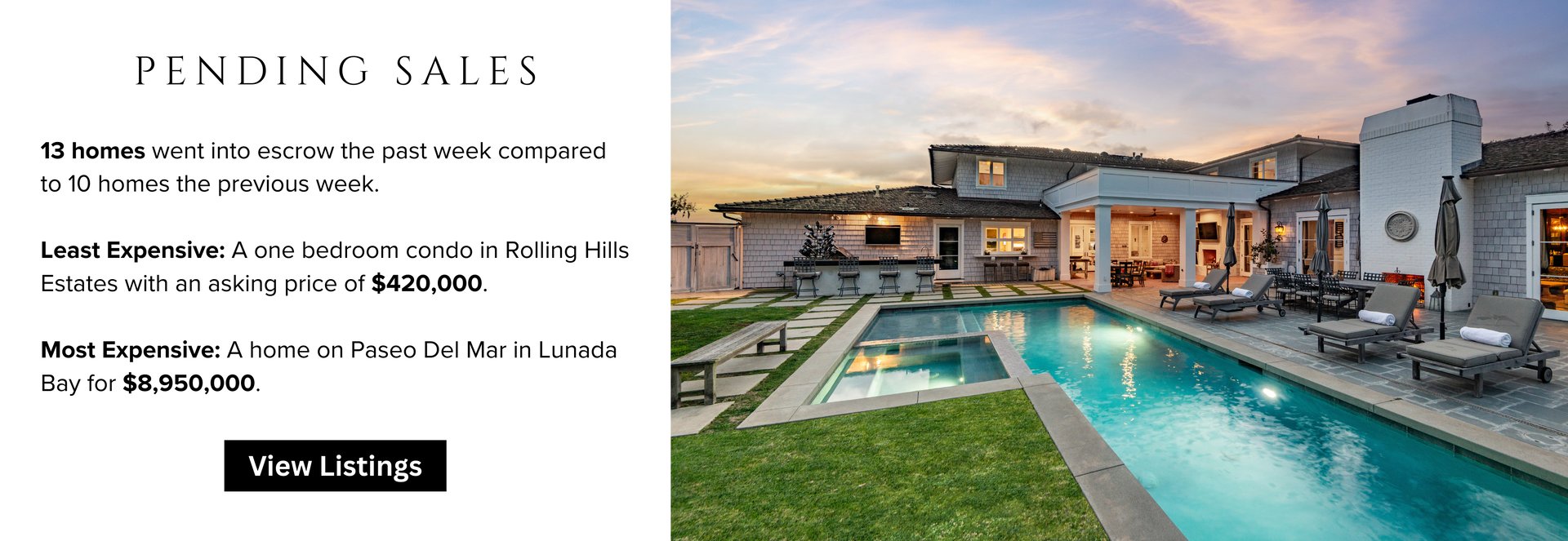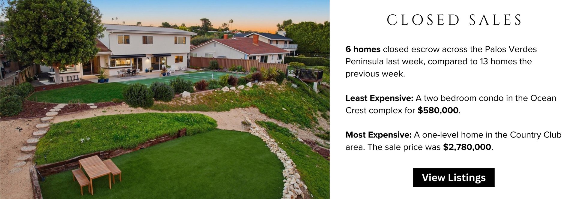 The Palos Verdes Peninsula market delivered another steady week, with strong activity across multiple price points. From entry-level condos to record-setting luxury estates, buyers and sellers continue to engage at every tier of the market. Here’s a closer look at what unfolded over the past week — including new listings, homes going into escrow, recent closings, and a standout Valmonte property that’s turning heads.