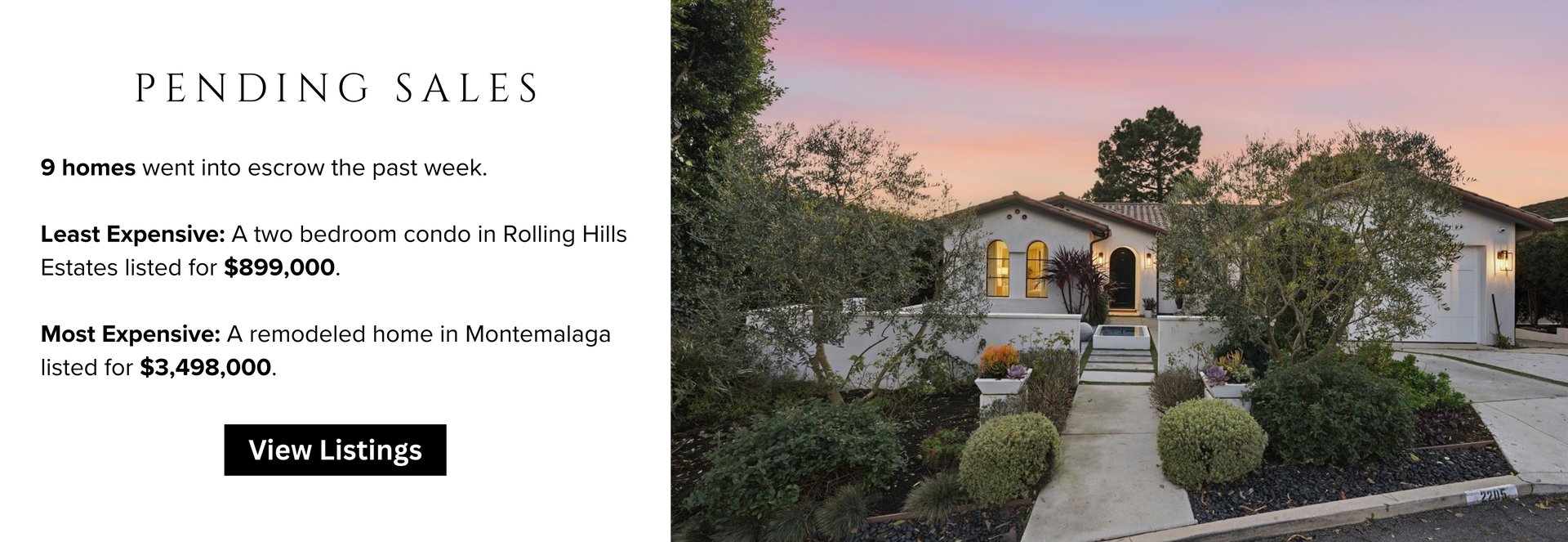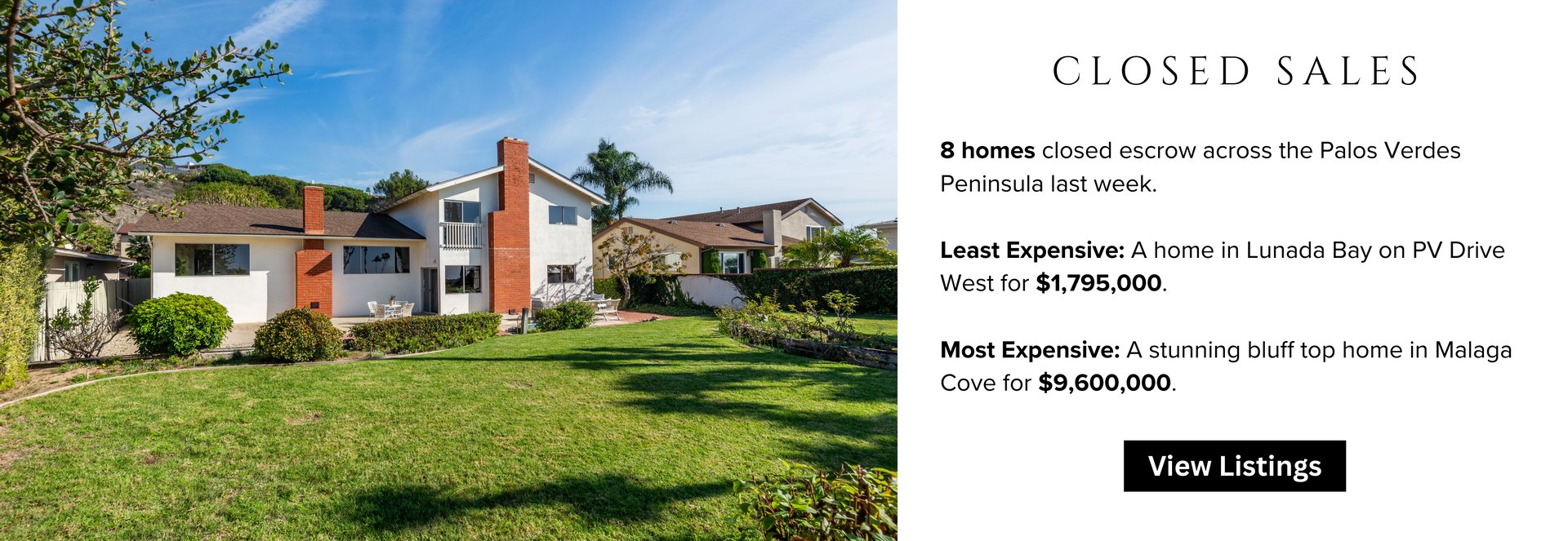The Palos Verdes Peninsula market delivered a mix of steady activity and standout luxury over the past week, with movement across new listings, pending sales, and notable closings. Buyers and sellers remained engaged at a range of price points, highlighted by a remarkable bluff-top sale in Malaga Cove that captured the attention of the entire Peninsula. This week’s House of the Week features Villa Sul Mare, an exceptional coastal estate that closed at $9,600,000 and exemplifies the enduring appeal of premier oceanfront properties.