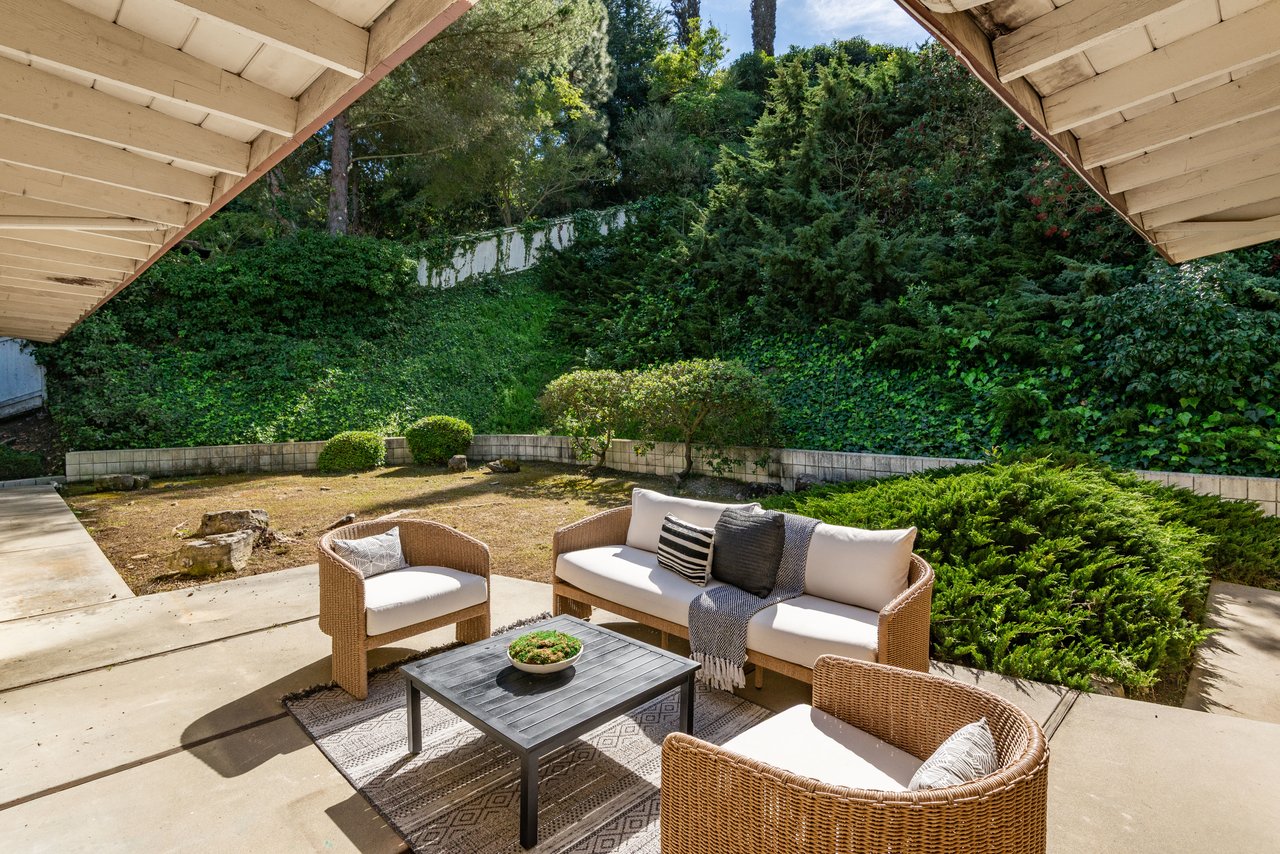 Vaulted ceilings, generous proportions, and a practical wing-style layout define this five-bedroom Mid-Century home. Designed for comfortable separation and flexibility, the floor plan balances expansive living spaces with a distinct guest wing offering four large, light-filled bedrooms and two bathrooms. The private primary suite is thoughtfully set apart on its own wing, complete with multiple closets and a three-quarter bath. The living room has a distinct "Mad Men" vibe, centered around a statement fireplace with scored surround. Expansive picture windows draw in natural light and overlook the greenery outside. A separate office provides an ideal work-from-home space or quiet study. The family room opens to the backyard through sliding doors, creating seamless indoor-outdoor flow. The kitchen features a breakfast nook and connects conveniently to the adjacent laundry room, while the generously scaled formal dining room is well positioned between the kitchen and living areas, a natural extension of the home's entertaining spaces. The expansive backyard remains largely untouched creating a blank canvas ready for landscaping, a pool, or a reimagined outdoor retreat. A three-car garage with direct access into the home, along with an oversized driveway, provides abundant parking and storage. Set in Montemalaga, this is an opportunity to shape the next chapter of a timeless home.