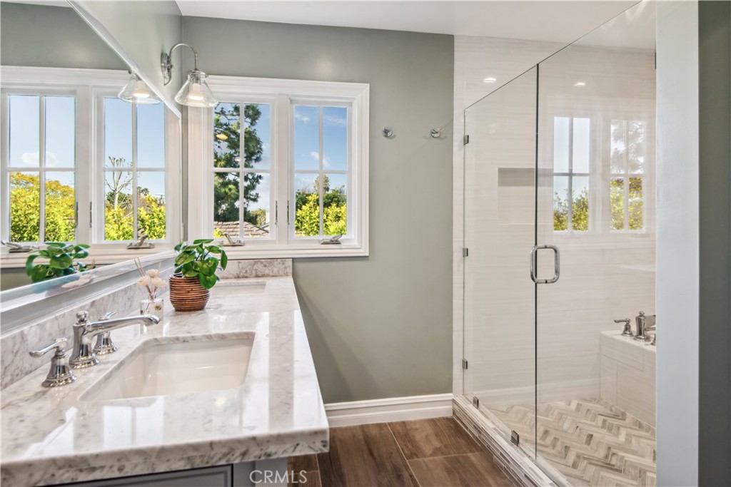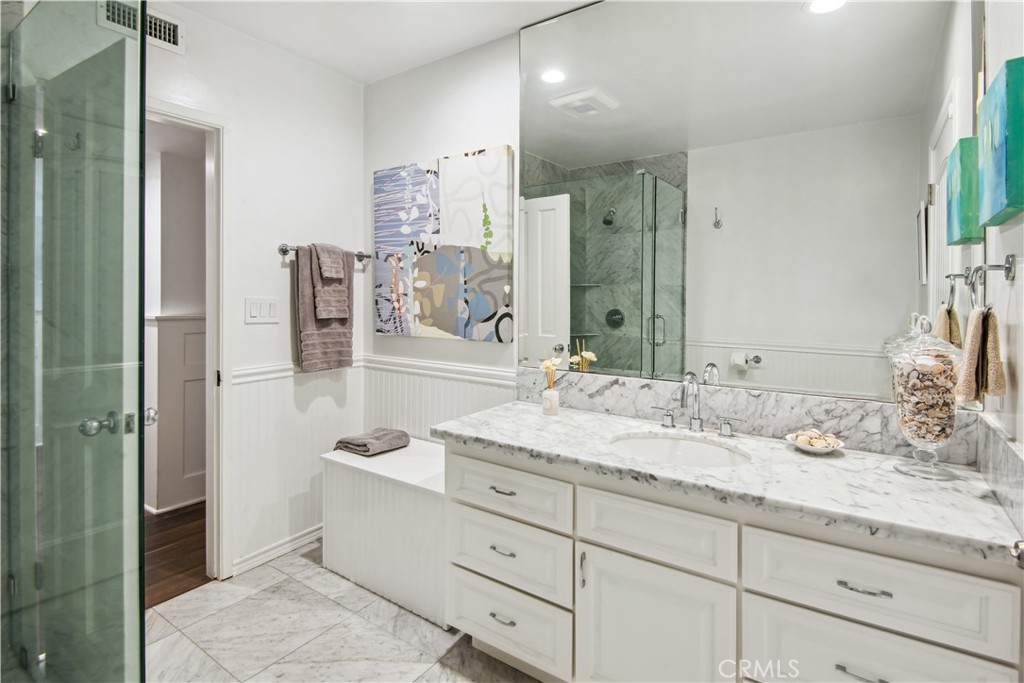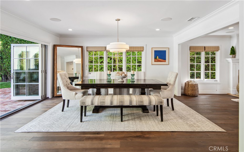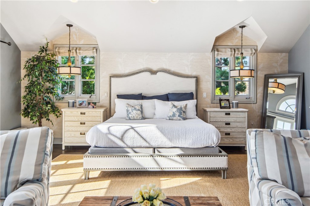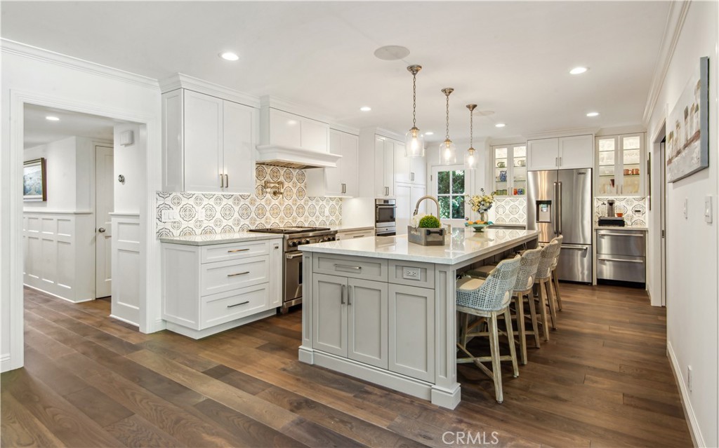 Incredible Coastal Cape Cod in the heart of lower Lunada Bay with the famous red door! From the minute you arrive, the charm and character is abundant. The entry level includes an inviting living room with bay window and roaring fireplace, a formal dining room, a spectacular kitchen with center island and an adjacent family room set up as a cozy media room. There's even a guest bedroom with private bathroom on the entry level. Cascading LaCantina doors provide a 16 foot passageway to the lushly landscaped, resort-like backyard, complete with fire pit, outdoor kitchen, as well as a sparkling pool & spa; it's spectacular! Upstairs, you'll find 4 bedrooms, (one being used as an office) including an oversized primary suite with vaulted ceiling, walk-in closet and luxurious bathroom. Used brick accents, hardwood floors, wainscoting, crown molding, air-conditioning, and so much more. Conveniently located just blocks from Lunada Bay Elementary, Palos Verdes Intermediate and PV High School, as well as Lunada Bay Plaza, this house has it all!