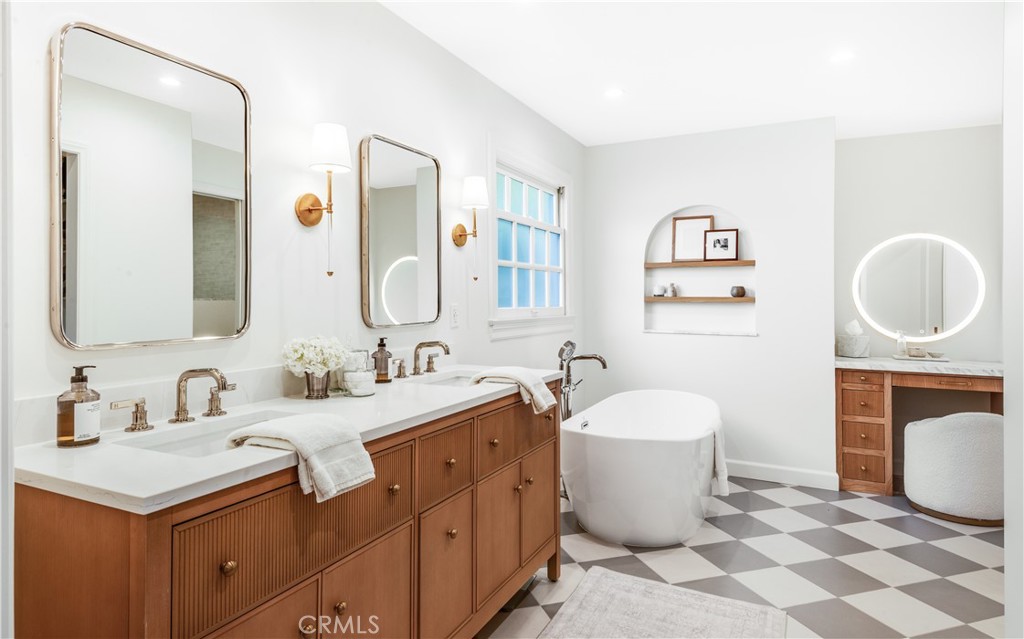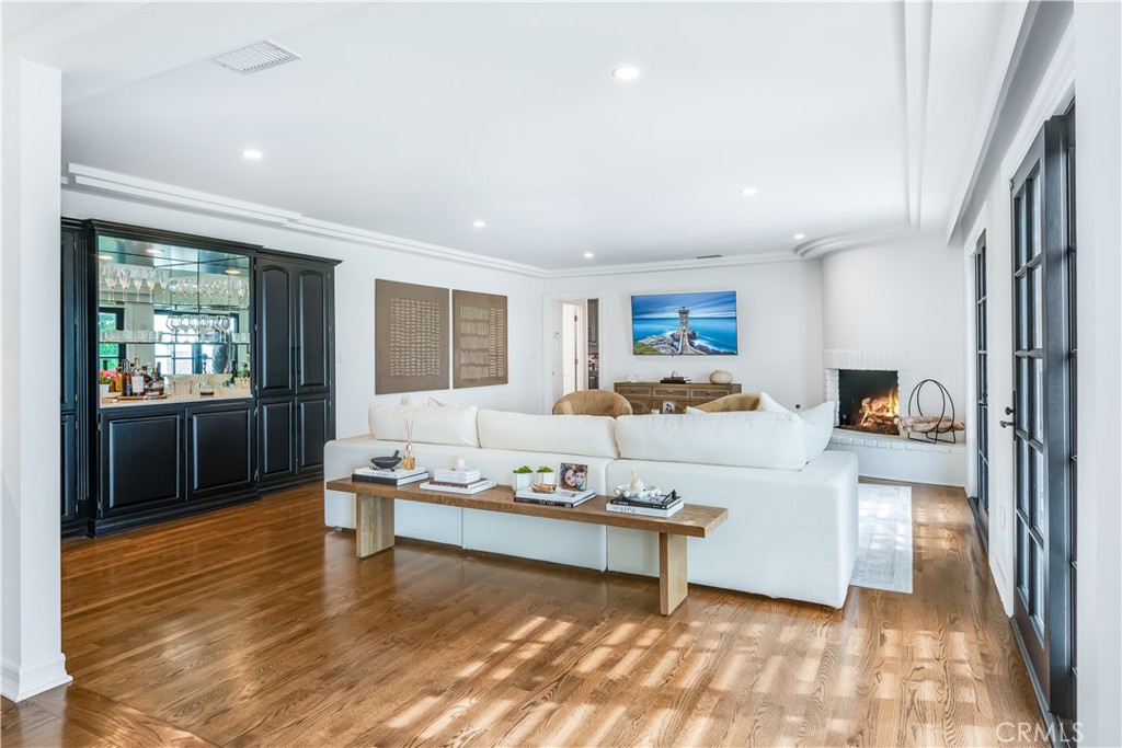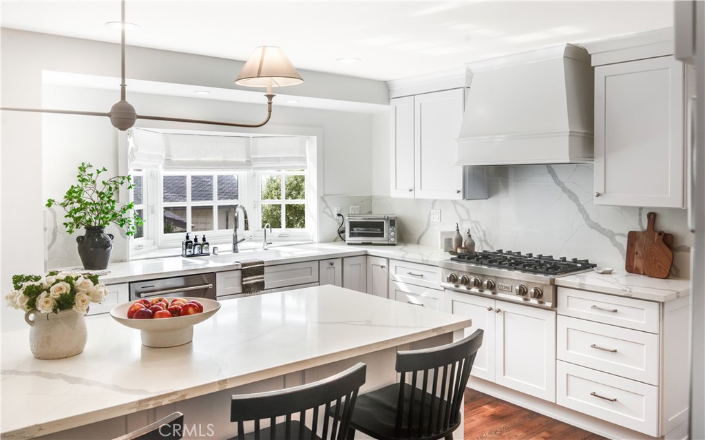 Sleek, stylish, and effortlessly inviting, this updated single-level home evokes the charm of a classic East Coast residence reimagined for California living. Brick accents, divided-light windows and a warm, cohesive palette create a sense of understated elegance throughout. The impressive living room is anchored by a classic fireplace and filled with natural light. The formal dining room is the perfect spot for entertaining. The remodeled kitchen is both beautiful and functional, featuring crisp white cabinetry and countertops. It opens seamlessly to the adjacent family room with fireplace, where French doors lead to the spacious backyard. Outdoors, the home enjoys a covered patio with pergola and soft string lighting creating a warm ambiance with distinct seating areas. Surrounded by lush landscaping and thoughtfully curated details, the space feels private and intimate. The home offers five spacious bedrooms, including a large primary suite with a gorgeous primary bathroom and walk-in closet. Set on an expansive, flat lot with manicured grounds and mature trees, this desirable single-level, Lunada Bay home has timeless appeal and sophistication.