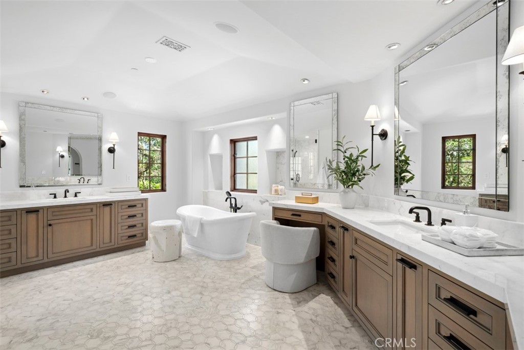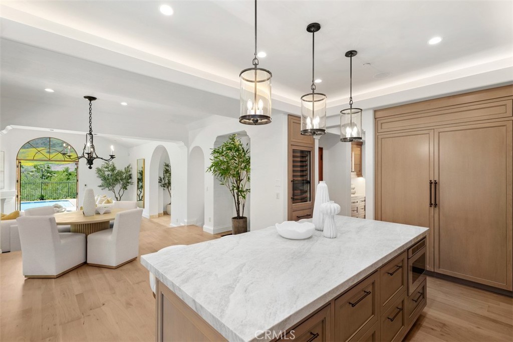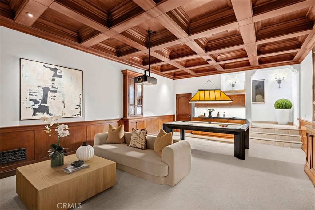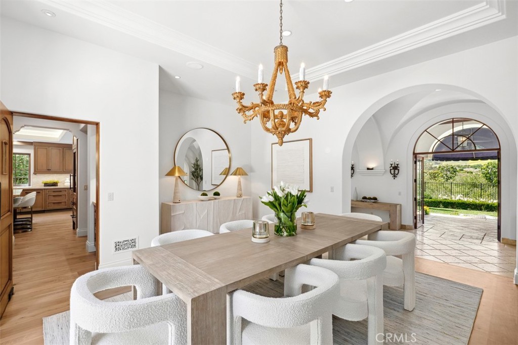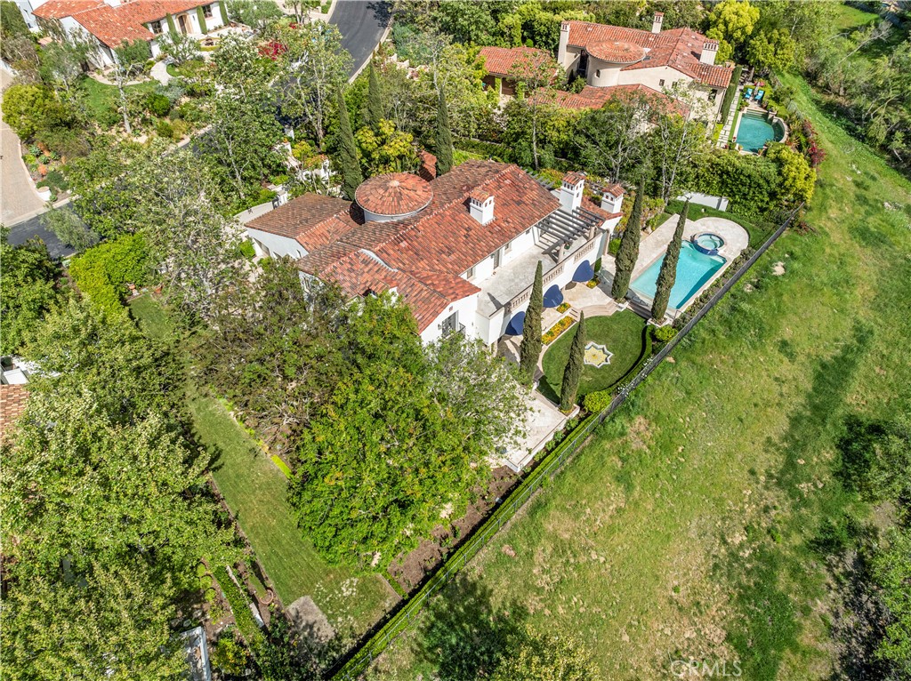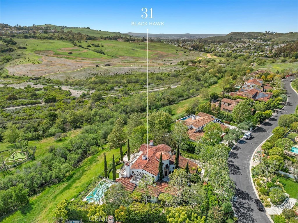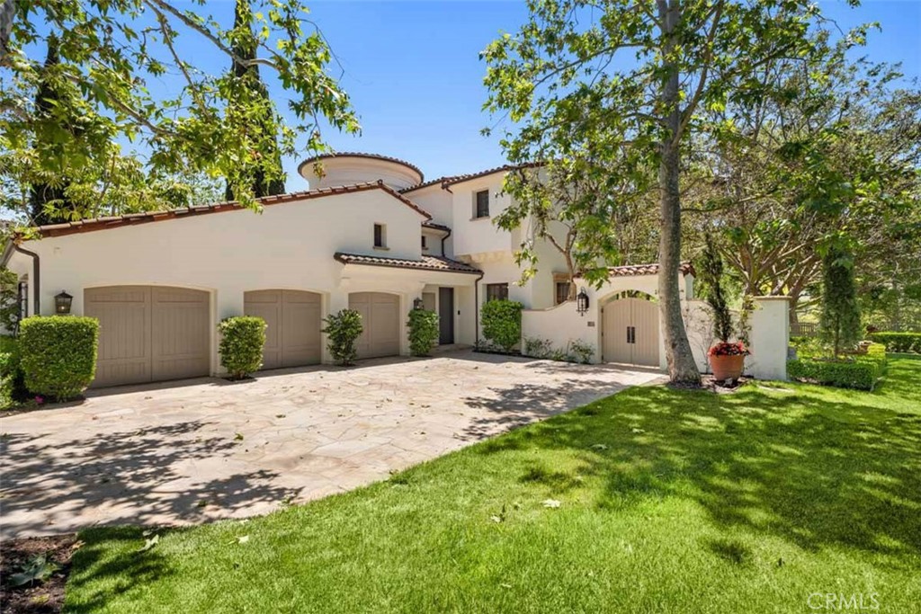 Reminiscent of the timeless villas along the Mediterranean coast, this front-row custom estate in Shady Canyon has been beautifully renovated to blend classic architecture with sophisticated, modern living. Set against the breathtaking backdrop of Bommer Canyon, the home offers an incredible 200 feet of sweeping scenic views-creating a private sanctuary designed for refined living and grand entertaining. From the sparkling pool and spa to the lush emerald lawn and multiple al fresco dining areas, every outdoor space is designed for year-round enjoyment. Framed by forever views from nearly every vantage point, this residence invites you to exhale and stay awhile. Step inside to a dramatic double-height foyer where arched hallways and custom wrought-iron railings frame a graceful, curved staircase. Natural light floods the interiors, drawing the eye to garden views beyond and setting the tone for the elegance found throughout. Spanning approximately 7,746 square feet across three levels-with convenient elevator access-the 5-bedroom, 7-bath estate showcases a serene neutral palette and wide-plank European oak flooring, creating a sense of cohesion and effortless elegance. The newly remodeled open-concept kitchen is the heart of the home, featuring designer cabinetry, premium appliances, and a large center island. It opens seamlessly to the family room and out to the backyard, where glass doors invite in light and canyon views-perfect for indoor-outdoor living and family gatherings. Upstairs, three spacious bedrooms include a serene primary suite with a private terrace, sitting area, and spa-inspired bath featuring dual vanities, a soaking tub, and walk-in marble shower. All baths have been recently reimagined with boutique hotel-level finishes and fixtures. The lower level is an entertainer's dream-offering a game and media lounge with coffered ceilings, custom cabinetry, a built-in bar, and plush seating with a full projection screen for movie nights. Outside, the spirit of the Mediterranean continues with vine-draped loggias, a central courtyard with tiled fountain, and lush landscaping. Enjoy a built-in BBQ, pool, and spa-set against the undisturbed beauty of Bommer Canyon. Shady Canyon offers two 24-hour guard gates, clubhouse, swim, pickleball, tennis, hiking/biking trails, playground, and a world-class Golf Club.