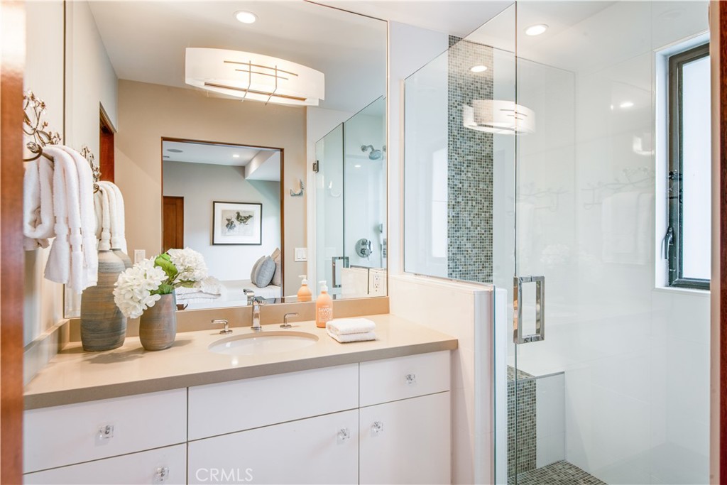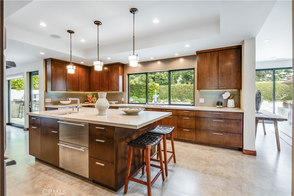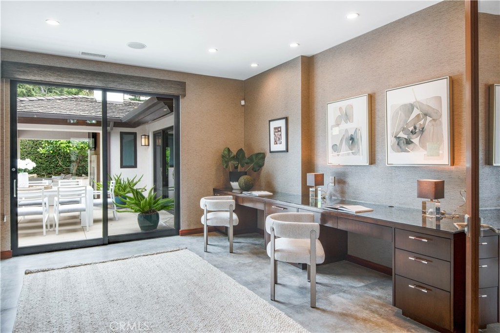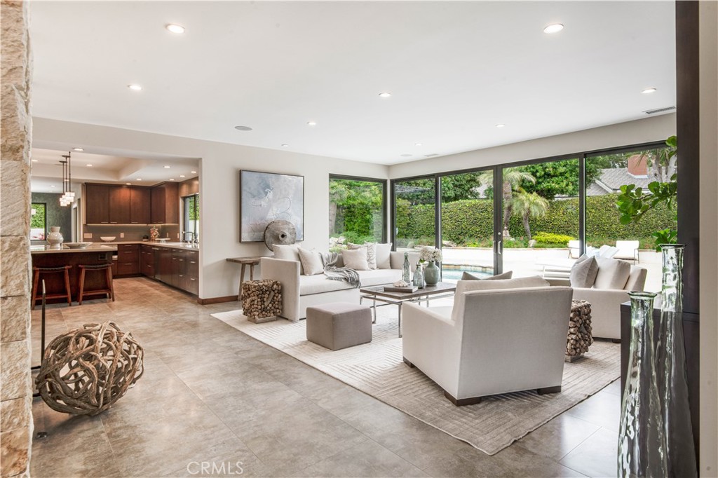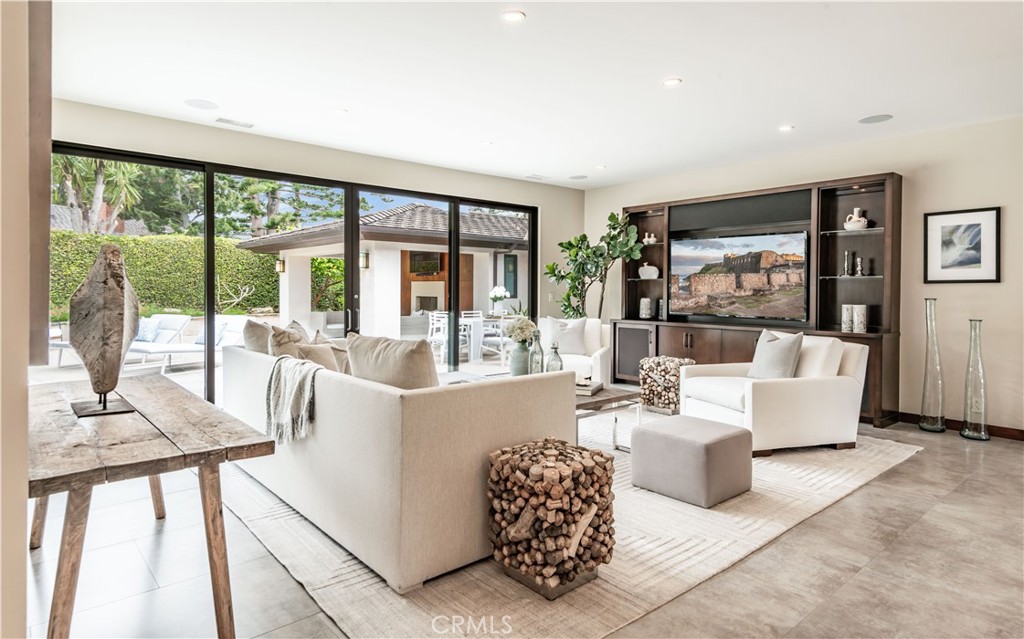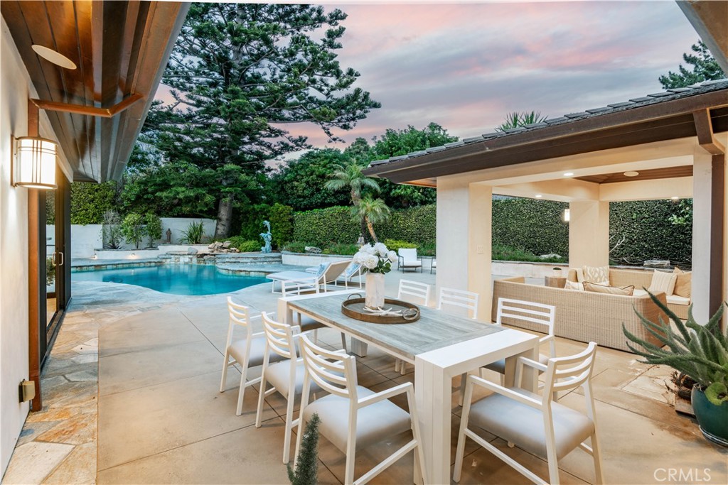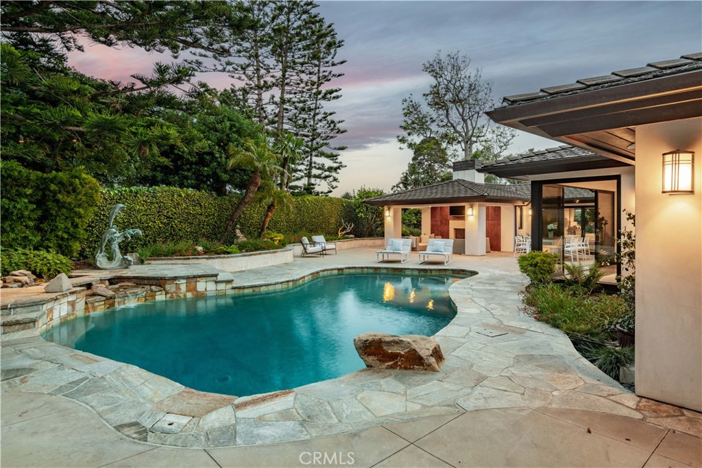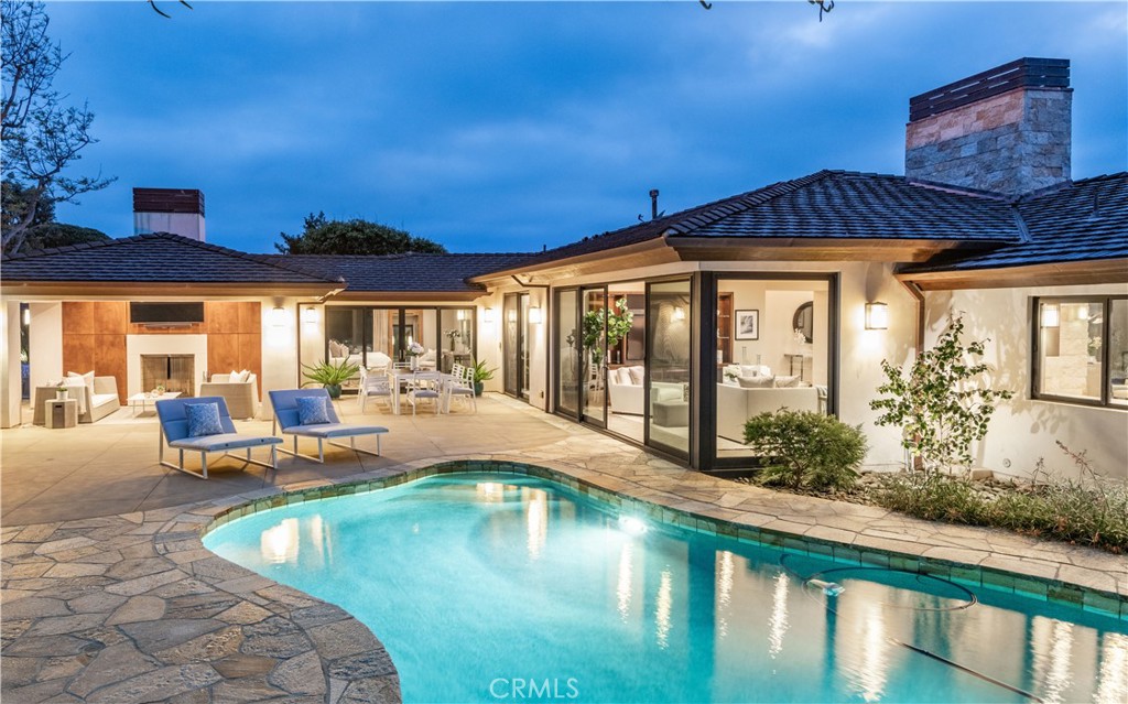Rocky Point... this exclusive enclave of homes includes some of the most desirable on the Peninsula. Situated on a large, flat lot, this stunning ONE LEVEL, contemporary style home was custom built in 2012. Expansive walls of glass encourage the seamless indoor / outdoor flow. An inviting entry opens to a very flexible floor plan where spacious rooms meld into a myriad of options. The gourmet kitchen enjoys wood cabinets and stainless steel appliances. The adjacent breakfast room includes a built-in booth for informal meals, and access to the attached two-car garage is perfectly positioned. Living spaces include a den, formal dining room and an amazing family room which leads out to a tropical oasis with saltwater pool, fruit trees and a covered loggia with fireplace. Three spacious bedrooms, each en suite, including the sumptuous primary suite with walk-in closet and luxurious bathroom. The handsome, oversized office is the ideal spot to work from home. When you add it all up: A+ location, beautiful craftsmanship and captivating architecture; this home has it all!