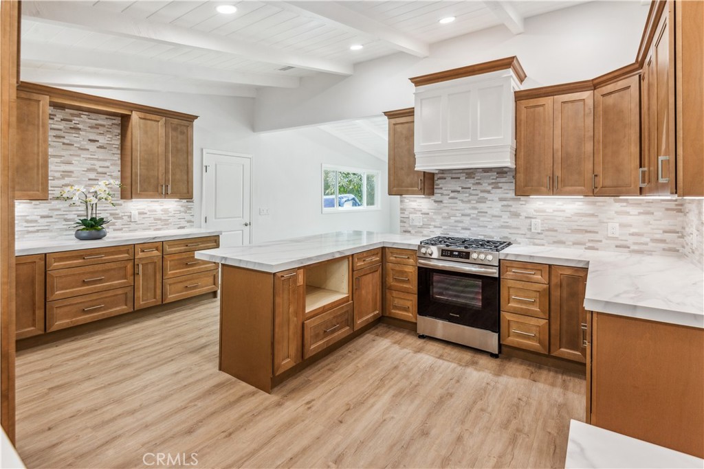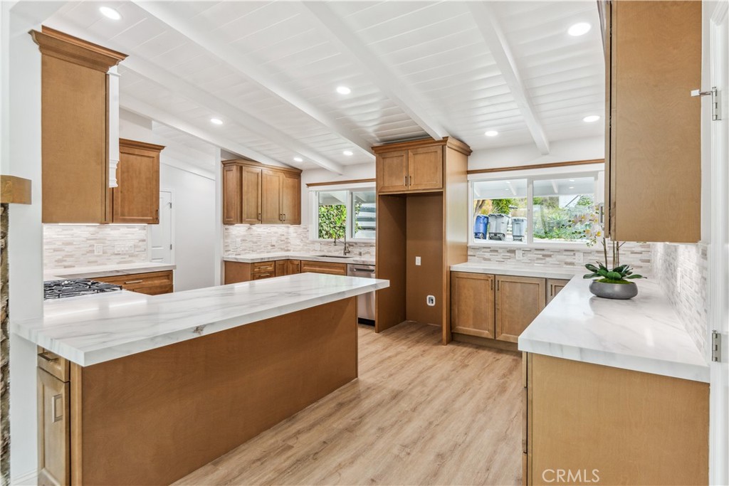 Located on one of the most picturesque streets in Rolling Hills Estates, this recently upgraded home is a perfect retreat for those seeking comfort and tranquility. As you step inside, you'll immediately be drawn to the spacious, bright and open floor plan. The large living room, featuring a cozy fireplace, flows seamlessly into the modern kitchen, which has been beautifully refreshed with quartz countertops, under-cabinet LED lighting, and brand-new, never-used dishwasher and oven. The kitchen is designed with culinary enthusiasts in mind, offering plenty of cabinet space, a peninsula island, and an adjacent pantry for added storage. The home features 4 spacious bedrooms and 2 bathrooms. There is an additional "flex room" that can be utilized as an office, gym, or even a 5th bedroom. Enjoy the oasis-like backyard which includes a pool and a custom-built patio area surrounded by lemon and avocado trees. If you're an equestrian enthusiast, you'll appreciate the on-premises horse arena, as well as access to the shared community riding ring. Other features include open beam ceilings, dual-pane windows, and recessed lighting. Close to the highly ranked Palos Verdes schools, an abundance of shopping and restaurant options, as well as the natural beauty of the Palos Verdes Peninsula.