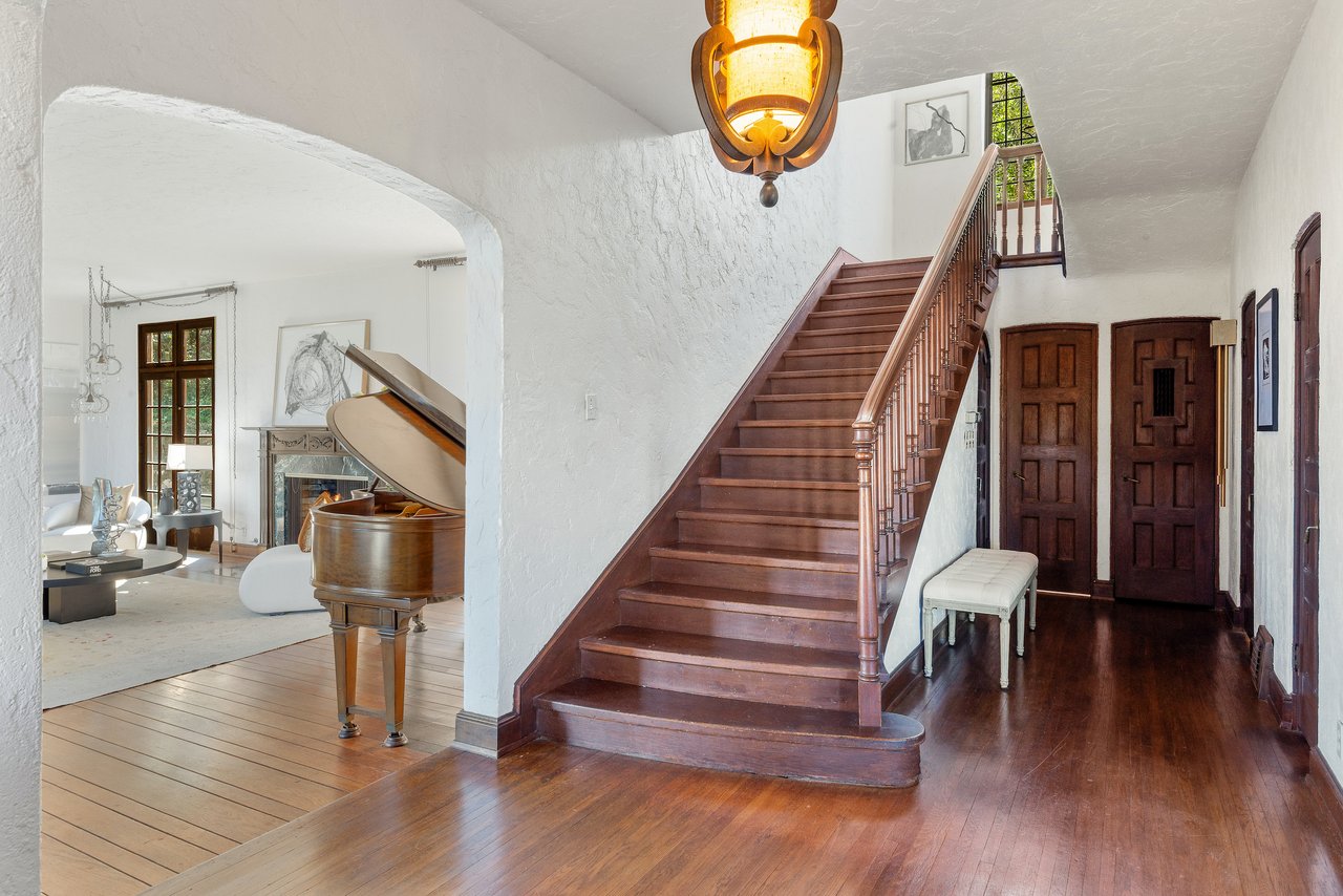 Set on a picturesque 32,000+ square foot hillside with sweeping ocean and harbor views, this romantic English Tudor captures the charm and architectural character of a bygone era. Steeply pitched gables, a smooth stucco exterior, and divided-light windows create a timeless presence, while mature trees frame the home and enhance its storybook setting. Inside, hardwood floors, large rooms, and high ceilings reflect the home's original scale and craftsmanship. Multiple French doors open to a broad terrace stretching across the front of the home, creating seamless indoor and outdoor living spaces; perfectly positioned to enjoy the expansive coastal panorama and sparkling harbor lights beyond. The incredible residence retains its original character, highlighting classic architecture, generous proportions, and exceptional views. This is a rare opportunity.