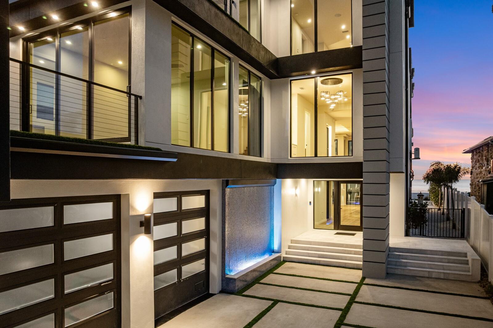 Designed for elevated coastal living, this exceptional New Construction by Tulia Home Designs delivers modern beachfront luxury. An artful blend of architectural distinction, state-of-the-art design, and modern innovation provides the ultimate in beachfront living. With 8,042 AC sq ft combined, the gated estate includes a Main House with 7,000 AC sq ft and an attached Guest House with 1,042 AC sq ft, each with its own private entrance (per builder plan). The first level provides flexible spaces for living and entertaining with an expansive game room and full entertaining bar, sweeping beach views and expansive sliders to the pool. The first level continues with a private office, gym with sauna, full bath and guest bedroom, with elevator access to the remaining floors. The second living level boasts a light-filled living area, highlighted by a striking fireplace feature and framed by magnificent Gulf beach views that create a breathtaking backdrop for luxury living and entertaining. A custom floating staircase and glass-enclosed wine cellar make an immediate statement of refined design, while wall-to-wall glass sliders assure panoramic beach views at every turn. Designed for elevated entertaining experiences, a sleek dual-island chef's kitchen showcases Wolf and Miele(r) gas appliances, custom cabinetry, a formal dining room and statement lighting. Purposeful design on the second level includes a state-of-the-art home theater with full surround sound and wet bar, library, ensuite guest bedroom with terrace. The gracious primary suite is a tranquil escape, where sweeping beach views greet you through wall-to-wall glass doors that open to a private terrace. Appointments include a morning bar, an opulent custom closet/dressing room, and a luxuriant spa-inspired bath with deep soaking tub and refined finishes. Outdoors, a true oasis and your private coastal escape provides the ultimate in Florida coastal living with a custom 15' x 30' pool, floating spa and sun deck. The pinnacle of this beachfront lifestyle is found on the rooftop terrace where you'll find unparalleled vistas of sea and sky for unforgettable entertaining. The two-level attached guest space offers a living area and kitchenette, along with a bedroom, bath, laundry room, and wrap-around terrace. The attached guesthouse offers a living area, kitchen, 1 ensuite bedroom, a powder room, x space, and rooftop terrace. Construction features include pilings, concrete block exterior walls and impact-rated windows and doors. Smart living features include an Elan home audio system. Completing this statement of distinction is a four-car garage, concrete drive and pool deck with artificial turf inlays, and meticulous attention to detail throughout--delivering a Gulf front estate that provides elevated luxury and coastal refinement. Located in a golf-cart-friendly coastal community with nearby parks, dining, shopping, an art center, library and convenient access to regional airports. Short-term rental use may be permitted pursuant to local regulations; buyer to independently verify all restrictions. Boat Dock located across the street is currently in permitting status; buyer to verify permit approval and final specifications.