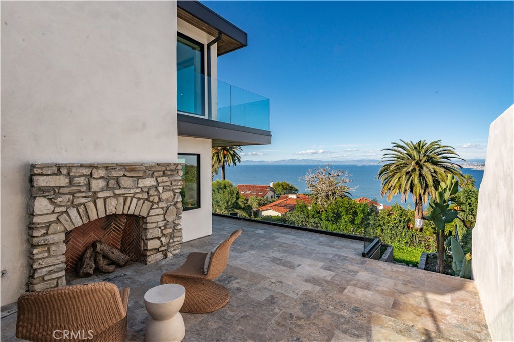 Beyond the main living spaces, the property offers two large, flat yard areas, an exceptional feature in Malaga Cove. The spacious side patio is anchored by a fireplace, creating multiple spaces for entertaining, play, and everyday enjoyment.