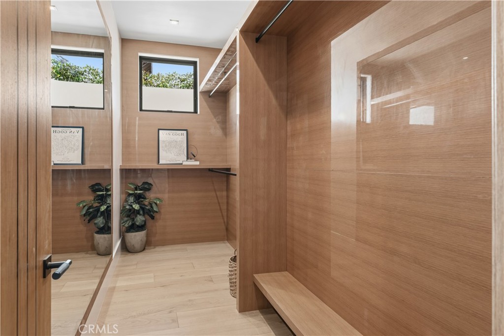 Extensively upgraded and expanded, the property features new plumbing, electrical, doors, windows, roof, and air conditioning, offering modern performance and peace of mind. An expansive private courtyard leads to a dramatic entry, where an oversized pivot door opens to a light-filled interior.
